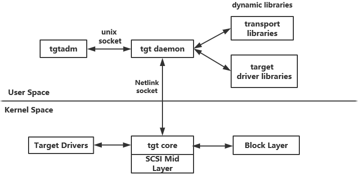 这个框架的问题主要是全部运行在内核态,后续迭代相对困难。因此我们回过头来看下stgt。